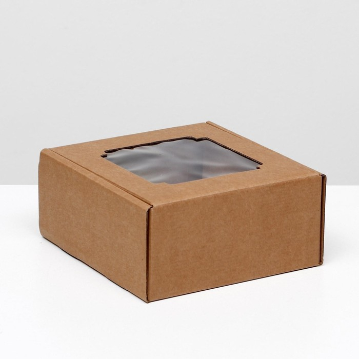 Коробка самосборная, с окном, крафт, 19 х 19 х 9 см, набор 5 шт.