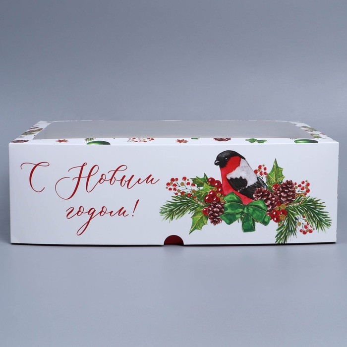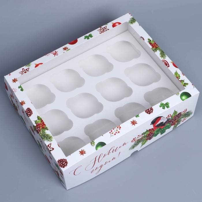 Коробка складная на 12 капкейков с окном «Снегирь», 32,8 х 25,6 х 10 см, Новый год