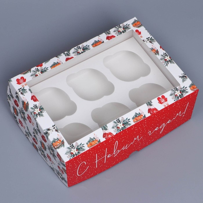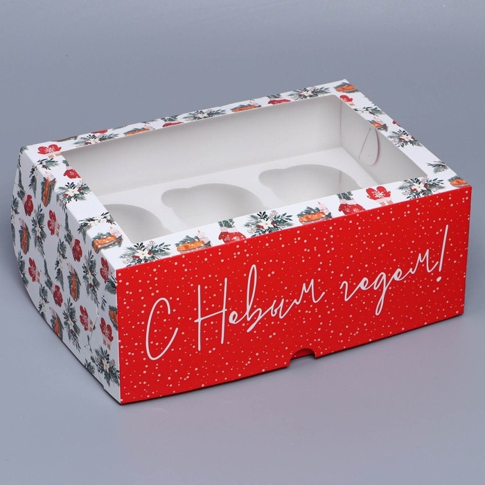 Коробка складная на 6 капкейков с окном «Хугге», 25 х 17 х 10 см, Новый год