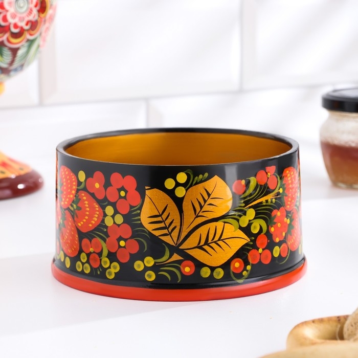 Традиционные элементы Хохломы — ягоды рябины и земляники, цветы и листья, птицы, рыбы и звери.
