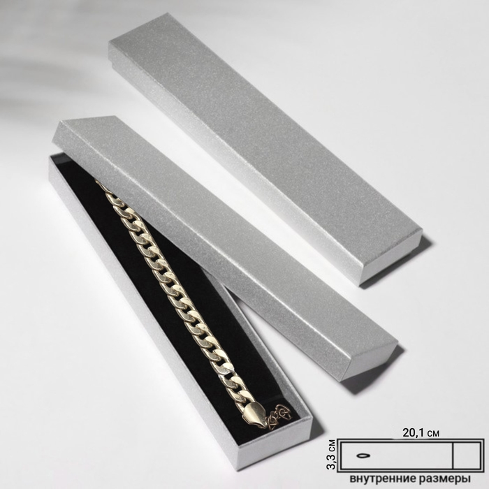 Коробочка подарочная под браслет/цепочку/часы «Блеск», 21×4 см (размер полезной части 20,1×3,3 см), цвет серебро
