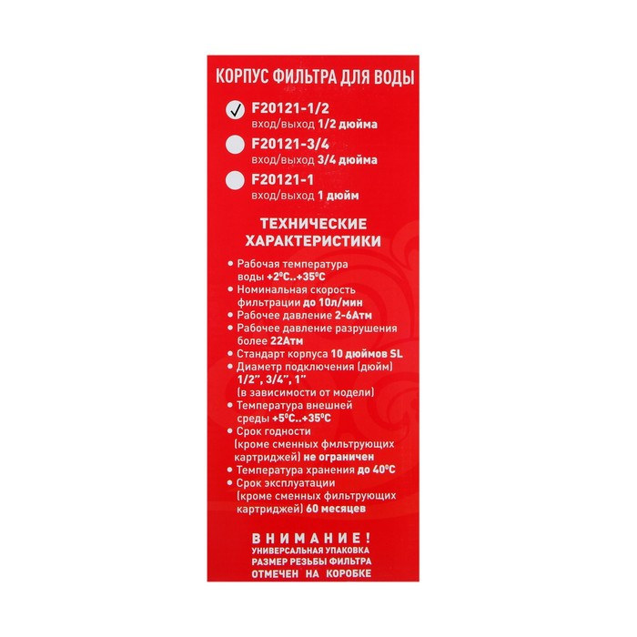 Корпус предфильтра "Аквафор", 1/2", 12х12.5х39 см, для холодной воды, армированный