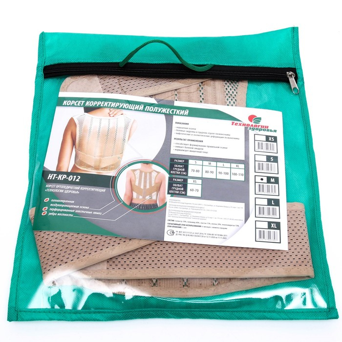 Корректор осанки НТ-КР-012, полужёсткий, 4 ребра, размер M, цвет бежевый