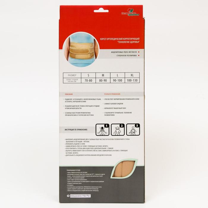 Корректор осанки НТ-КР-031, усиленный, 4 ребра, размер L, цвет бежевый