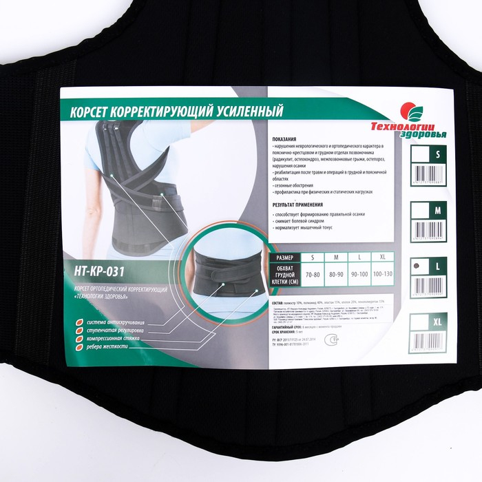 Корректор осанки НТ-КР-031, усиленный, 4 ребра, размер L, цвет чёрный