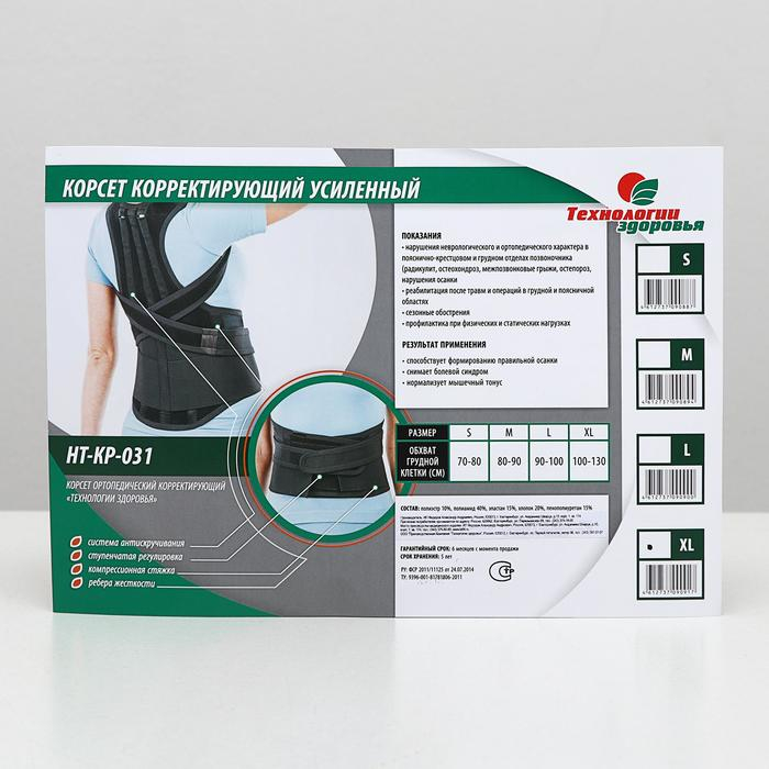 Корректор осанки НТ-КР-031, усиленный, 4 ребра, размер XL, цвет чёрный