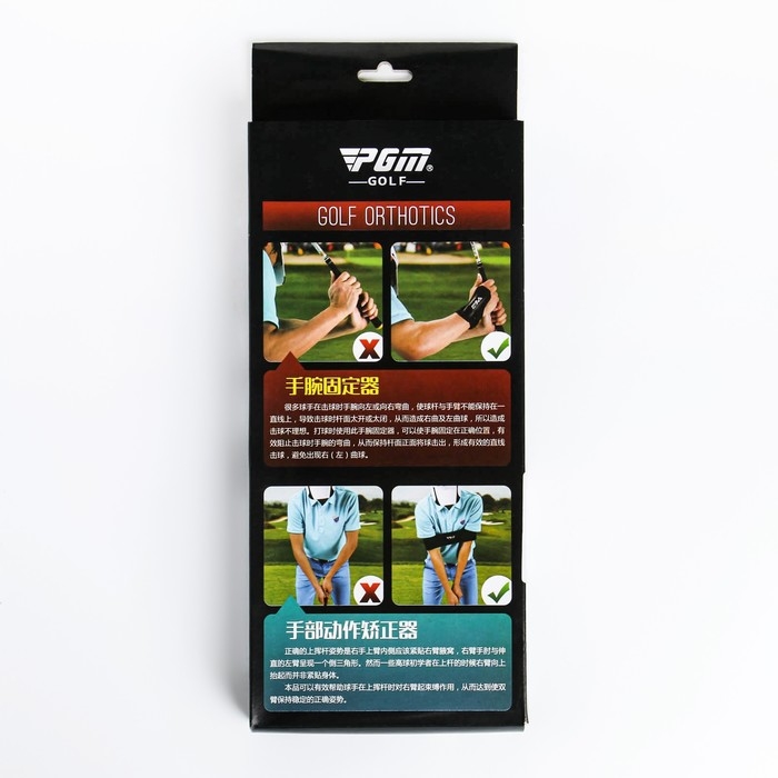Изготовлен из высокоэластичной ткани, это простой и эффективный инструмент для тренировки по гольфу. Устанавливает правильное положение рук и локтя, не позволяя им расходится при замахе.