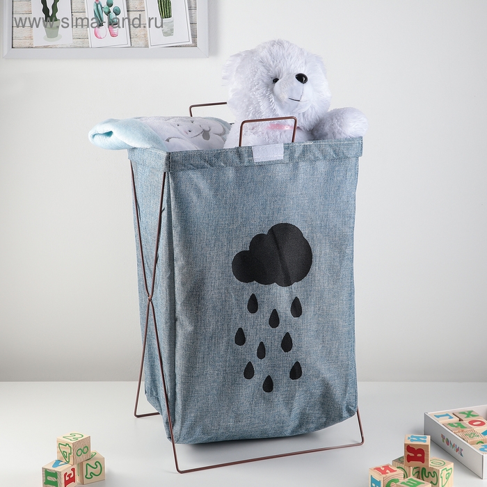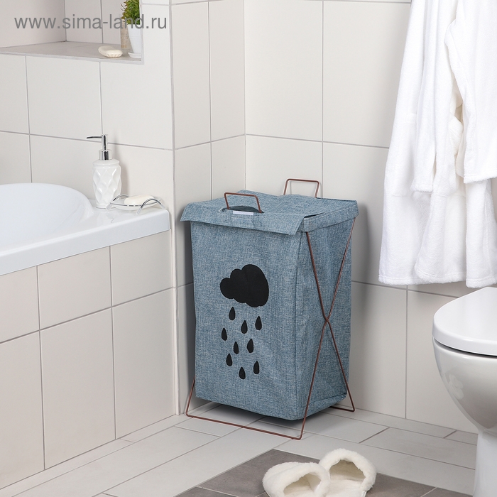 Корзина для белья складная с крышкой «Тучка», 35×28,5×57,5 см, цвет синий