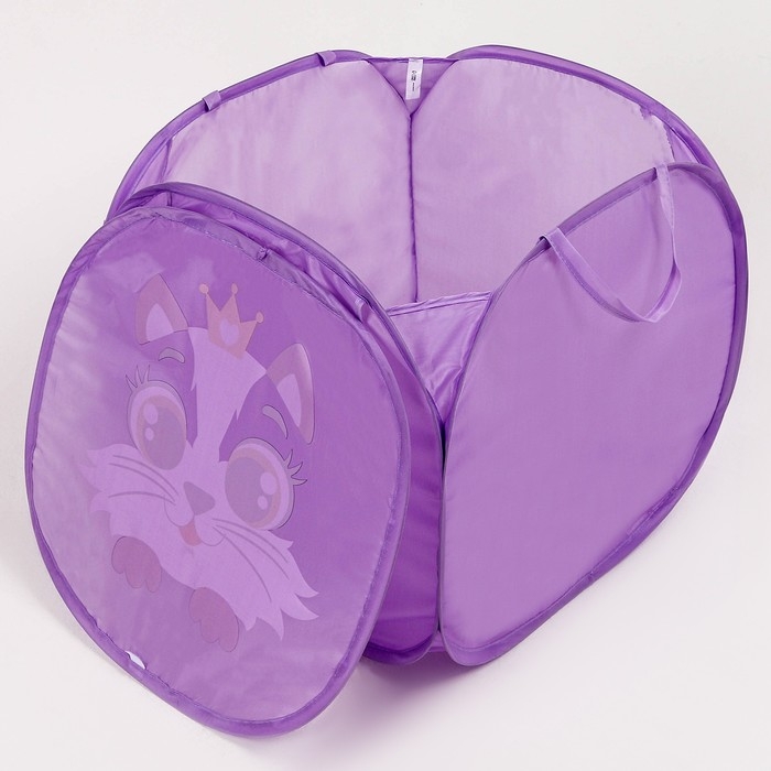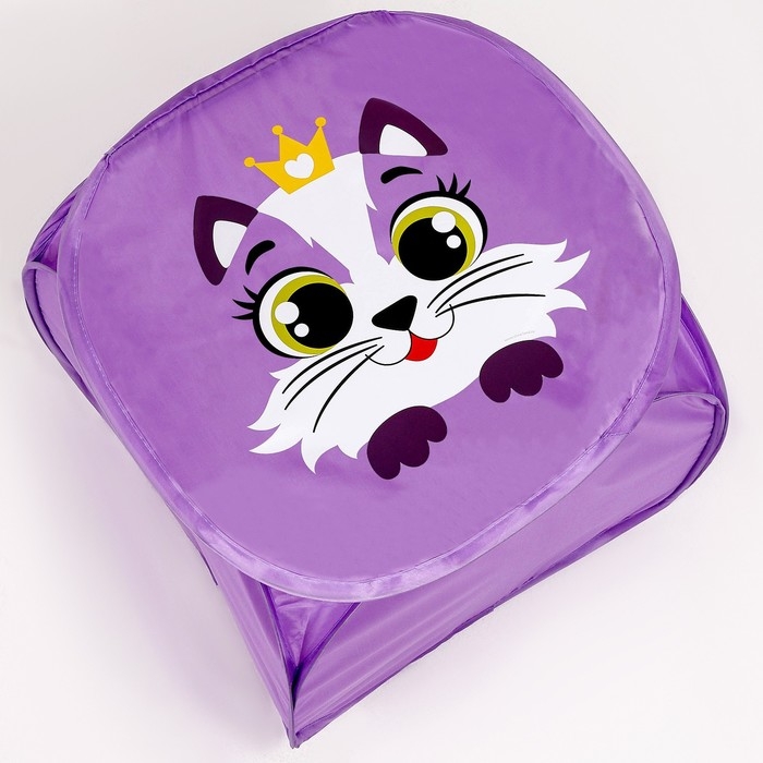 Корзина для хранения игрушкек с крышкой «Котик», 42 х 42 х 42 см, фиолетовая