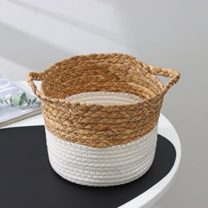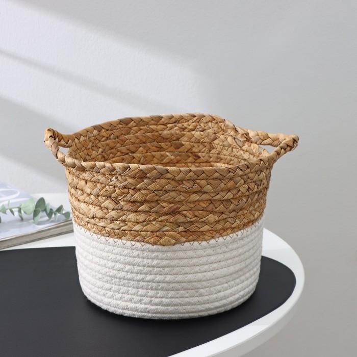Корзина для хранения ручной работы, с ручками, камыш, хлопок, 20×20×15 см