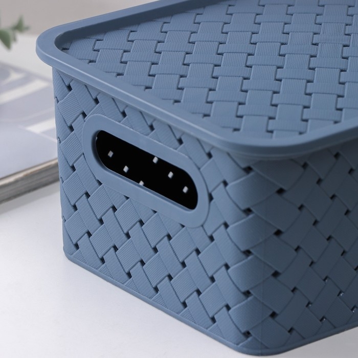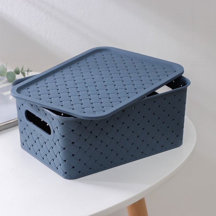 Корзина для хранения с крышкой Виолет «Береста», 3 л, 23,5×17,3×10,5 см, цвет синий