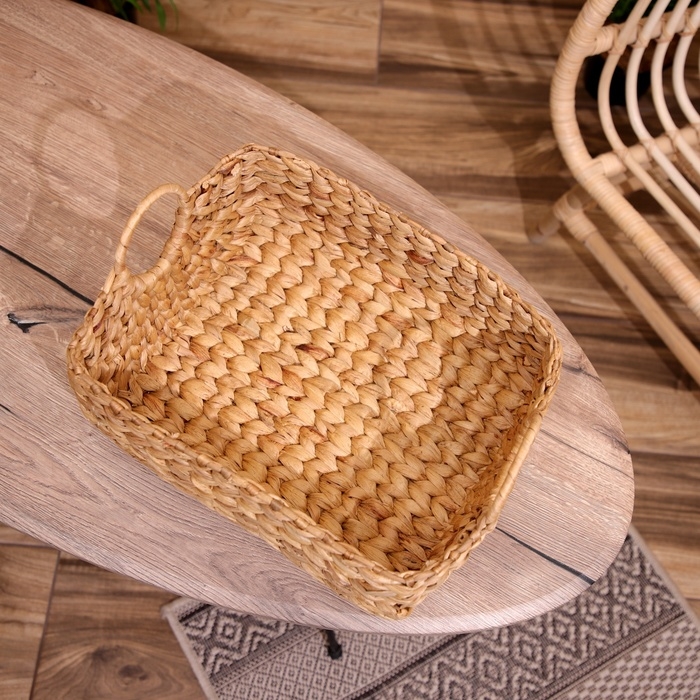 Плетёная корзинка ручной работы сделана из водного гиацинта. Поверхность обработана водоотталкивающим и антибактериальным покрытием, поэтому изделия можно использовать в ванных комнатах.
