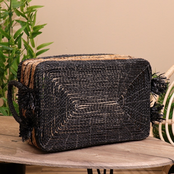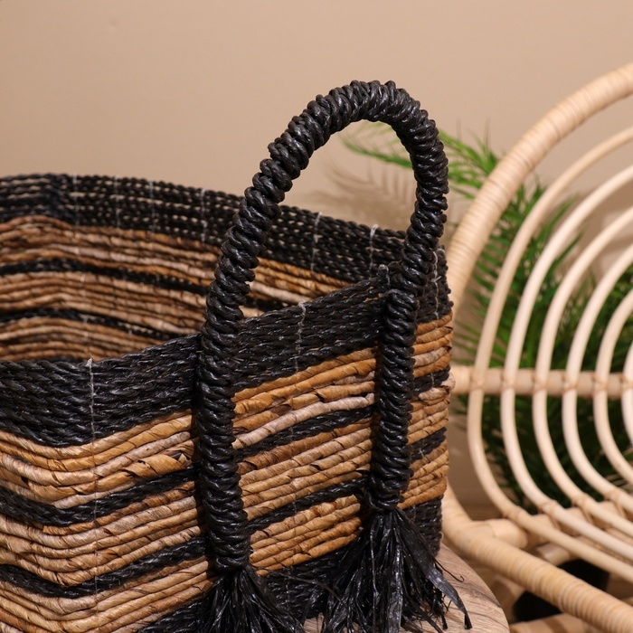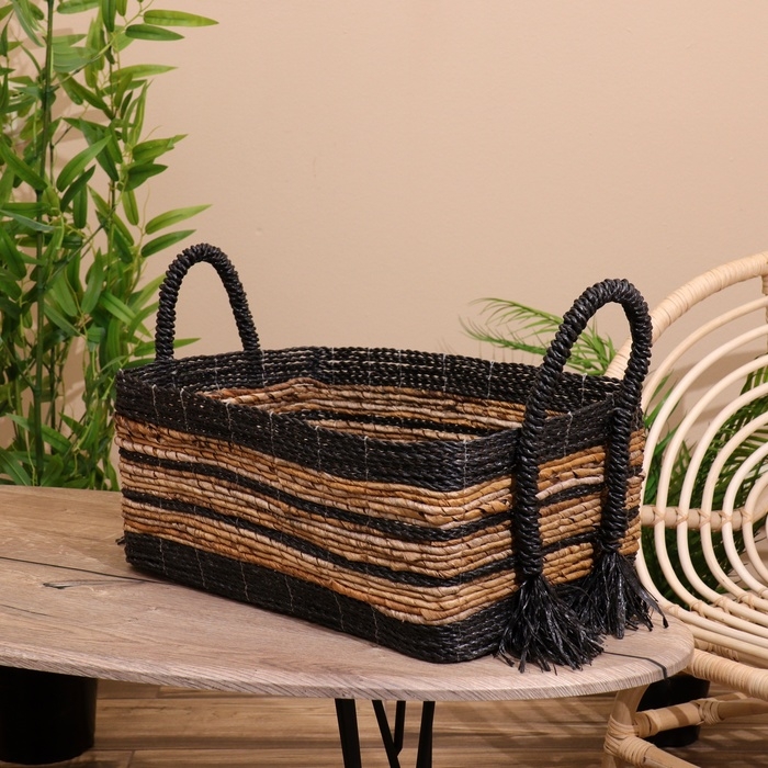 Плетёная корзинка сделана из экоматериала вручную, поэтому двух одинаковых экземпляров не найти.