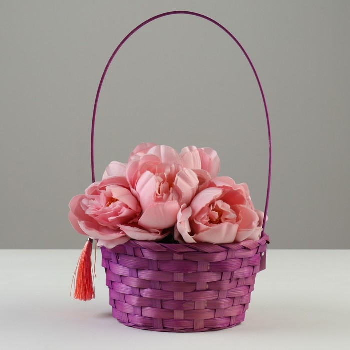 Корзина плетеная, D19 х 9 х 32 см, фиолетовая, бамбук