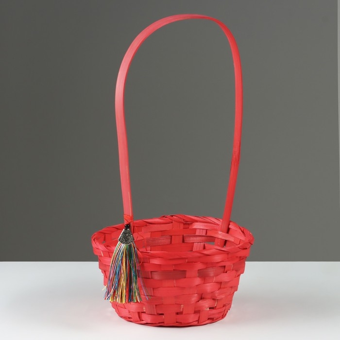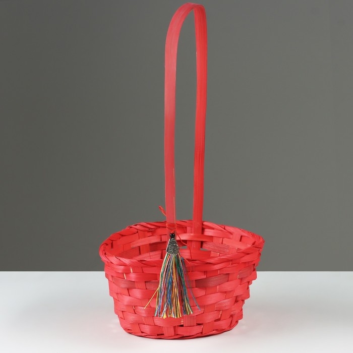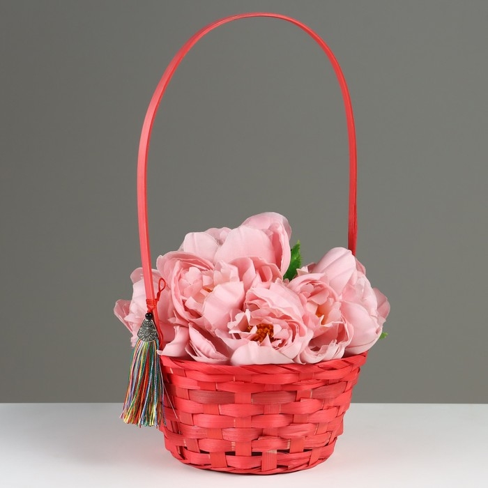 Корзина плетеная, D19 х 9 х 32 см, розовая, бамбук