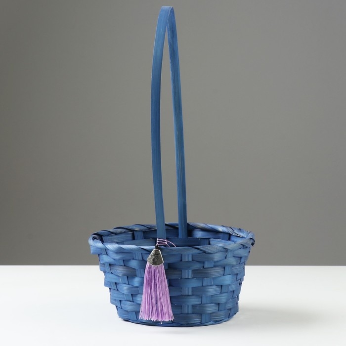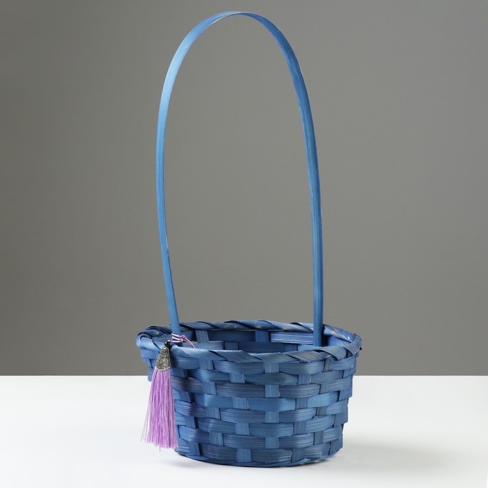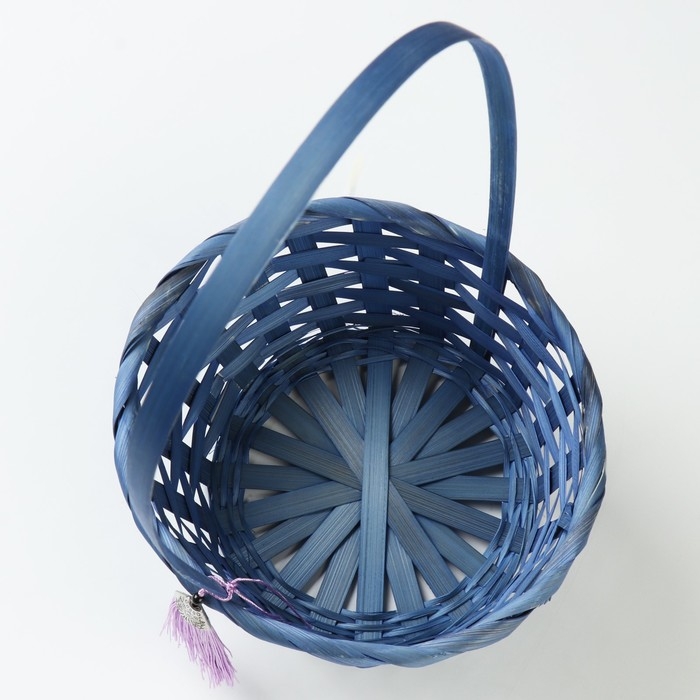 Корзина плетеная, D19 х 9 х 32 см, синяя, бамбук