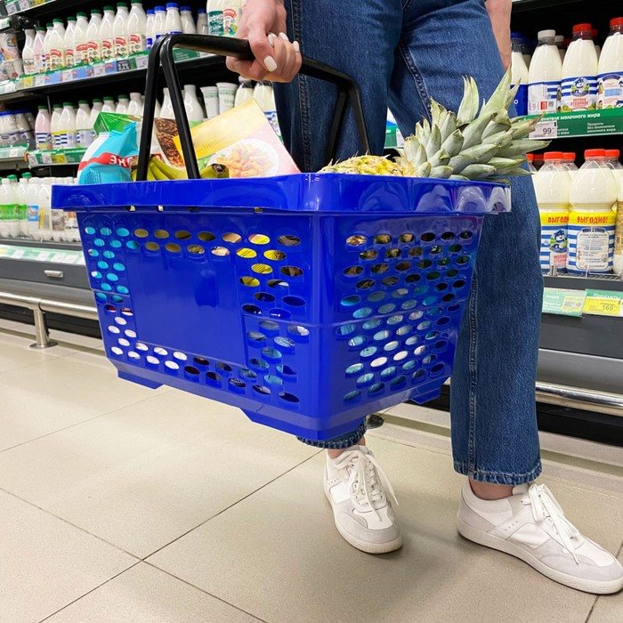 Корзина покупательская пластиковая, 20 л, 2 пластиковые ручки, цвет синий