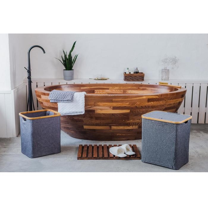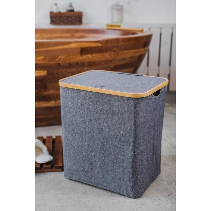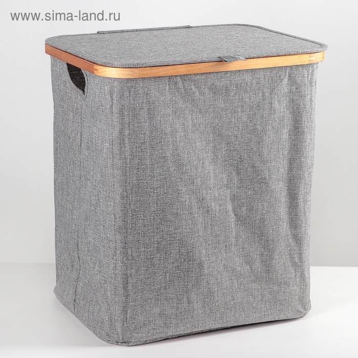 Корзина для белья Доляна «Лён», с крышкой, 37×43×66 см, цвет серый