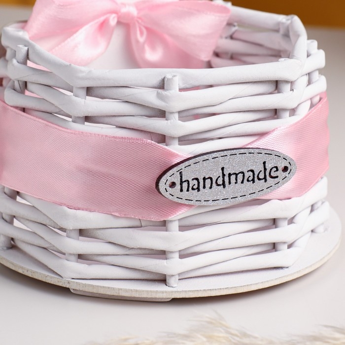 Корзинка плетёная из лозы "Котик" с бантом 12,5х9х16,5 см МДФ Белый-розовый