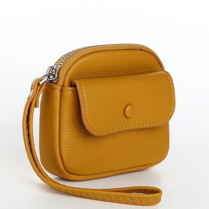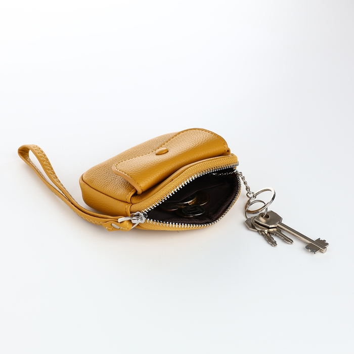 Кошелёк-ключница на молнии, кольцо, цвет жёлтый