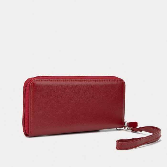 Кошелёк на молнии, с ручкой, цвет красный