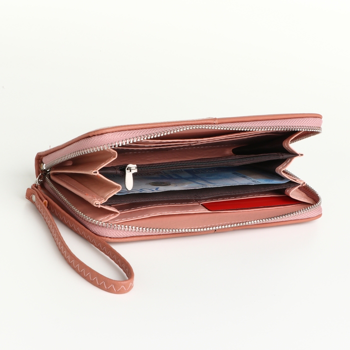 Кошелёк женский на молнии, цвет розовый