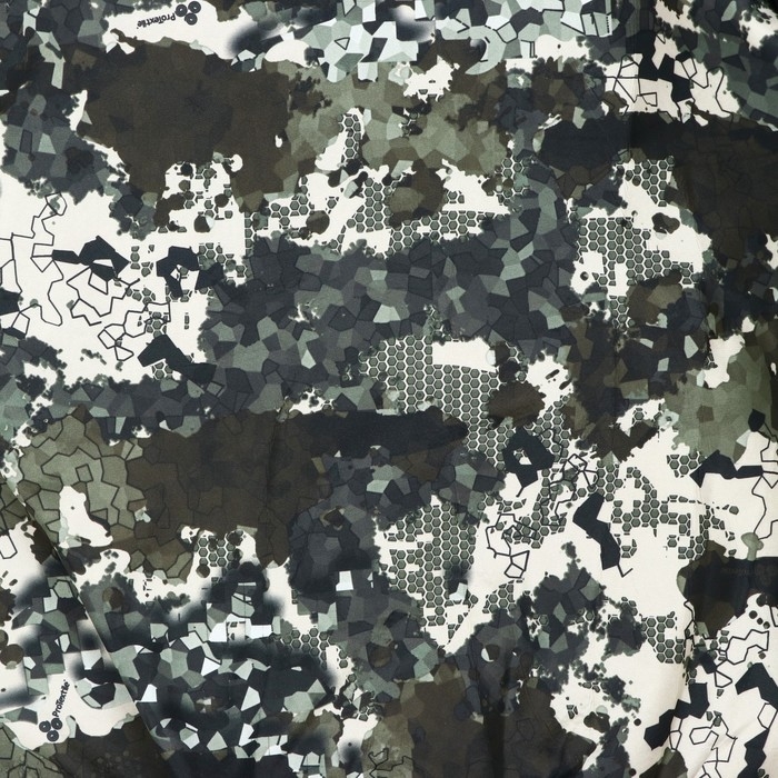 Костюм состоит из куртки и брюк, выполненных из ткани Dewspo fleece bonding (100% ПЭ), которая обладает водоотталкивающими свойствами благодаря DWR пропитке (durable water repellent).