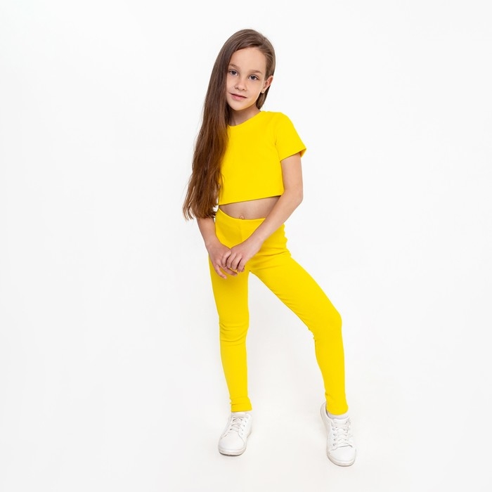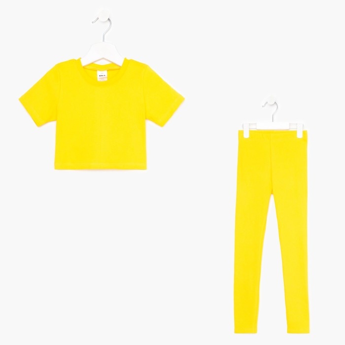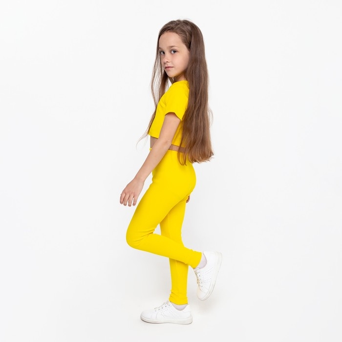 Костюм для девочки (футболка, лосины), цвет жёлтый, рост 122 см