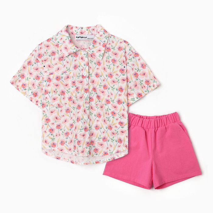 Костюм для девочки (рубашка и шорты) KAFTAN, р.34 (122-128), розовый