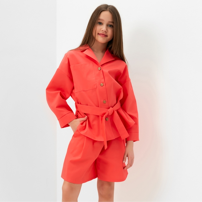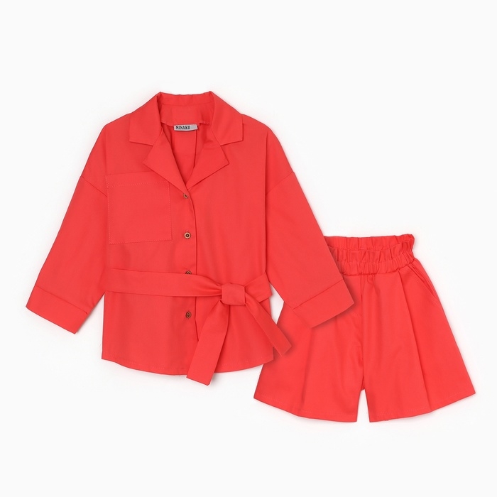 Костюм для девочки (Рубашка и шорты) MINAKU, цвет красный, рост 128 см