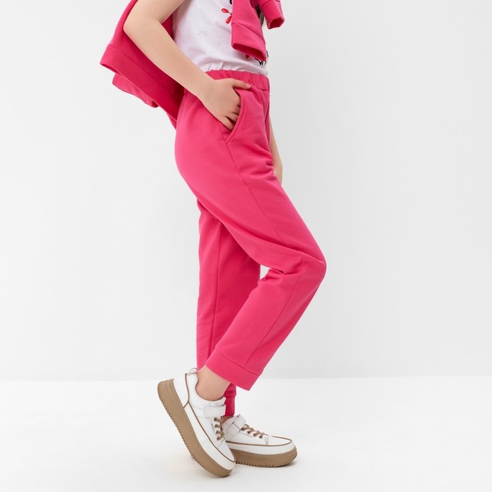 Костюм для девочки (толстовка, брюки) с НАЧЁСОМ, цвет фуксия, рост 116 см