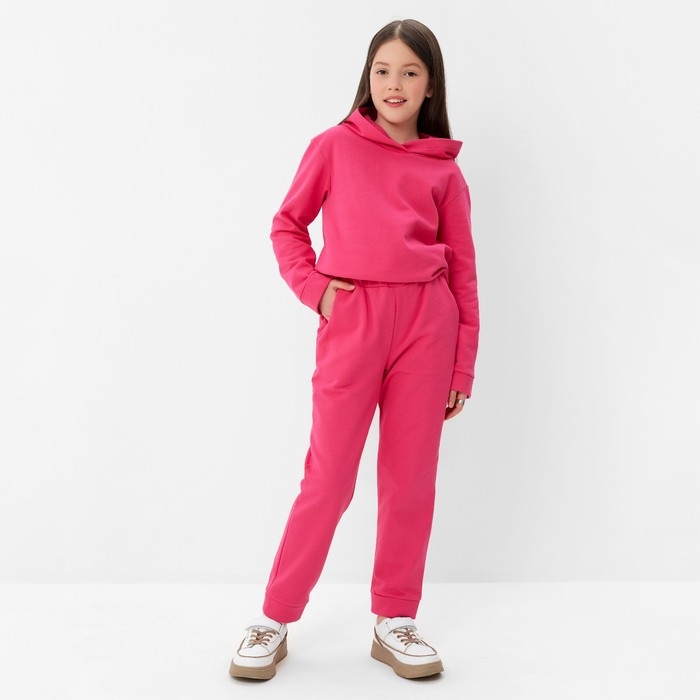 Костюм для девочки (толстовка, брюки) с НАЧЁСОМ, цвет фуксия, рост 122 см