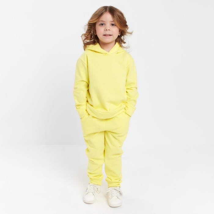 Костюм для девочки (толстовка, брюки) с НАЧЁСОМ, цвет жёлтый, рост 116 см