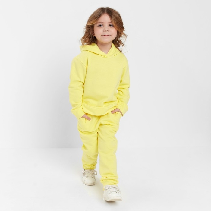Костюм для девочки (толстовка, брюки) с НАЧЁСОМ, цвет жёлтый, рост 134 см