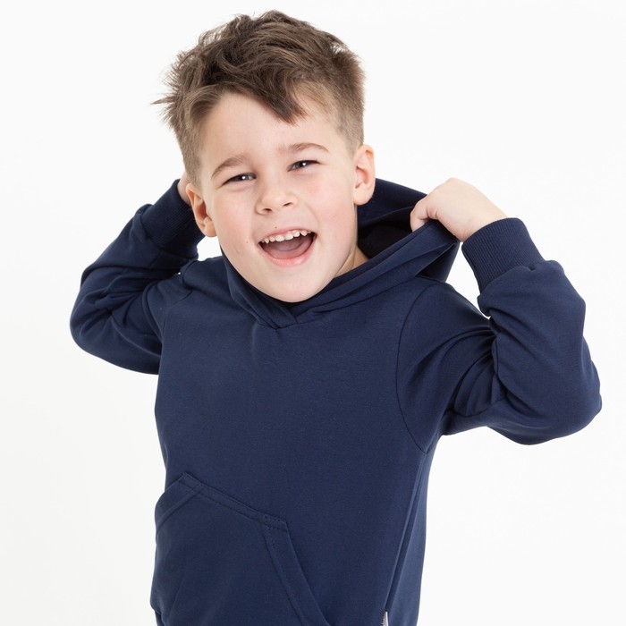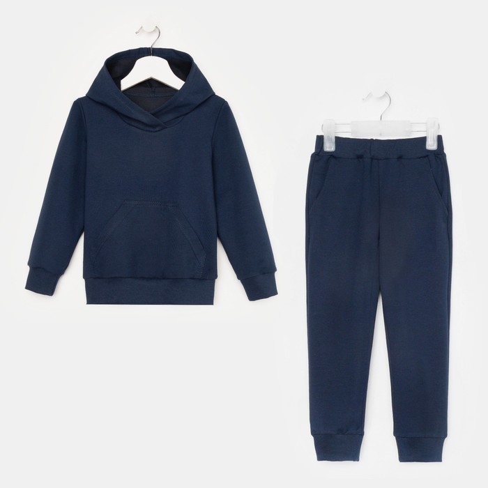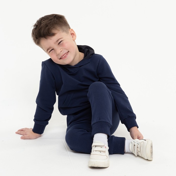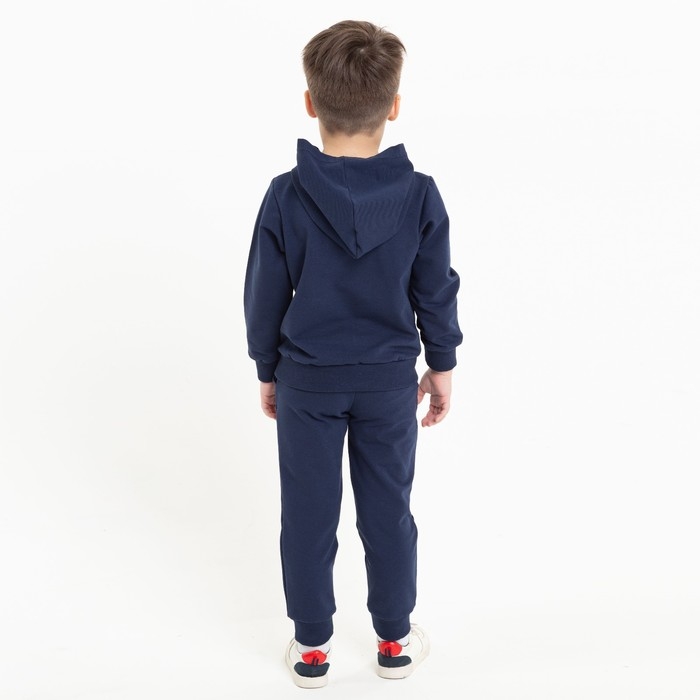 Костюм для мальчика (толстовка/брюки), цвет тёмно-синий, рост 98