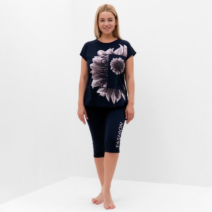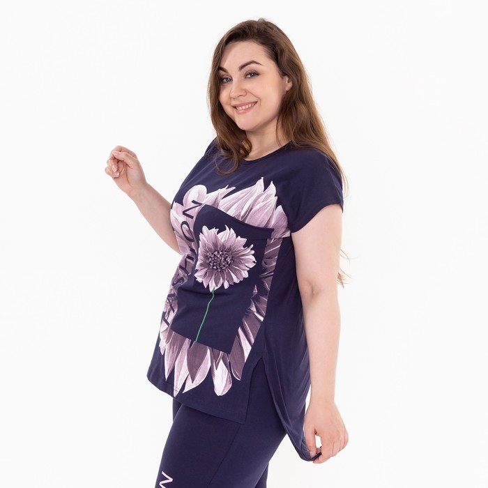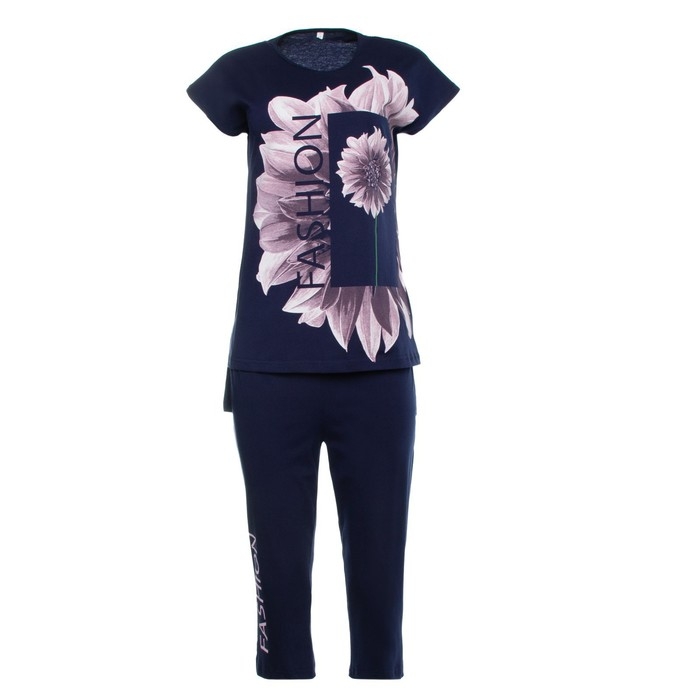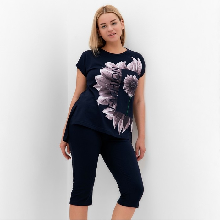 Костюм домашний женский (туника, бриджи), цвет синий, размер 52