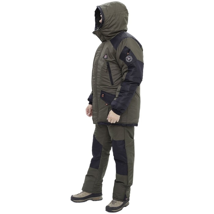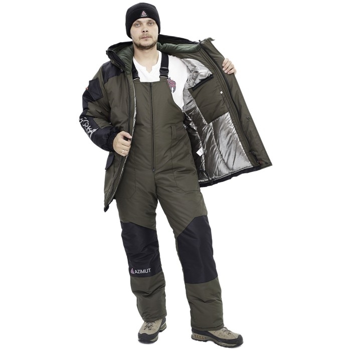 Костюм мужской зимний утеплённый, подходит также для регионов с экстремальными температурами ниже -45С, состоит из полукомбинезона и куртки. Выполнен из ветро и влагонепроницаемой мембранной ткани.