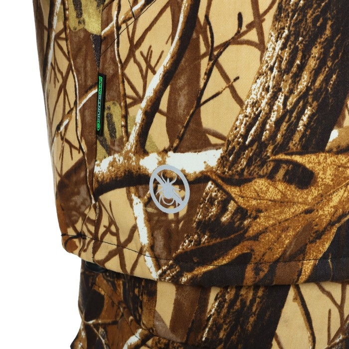 Куртка имеет специальные ловушки для клещей в области груди, спины и на рукавах, а также внутреннюю юбку, которая исключает доступ к телу для насекомых. На изнанке яркая ткань для легкого обнаружения насекомых. Манжеты сделаны из эластичной ткани, плотно прилегают к запястьям.