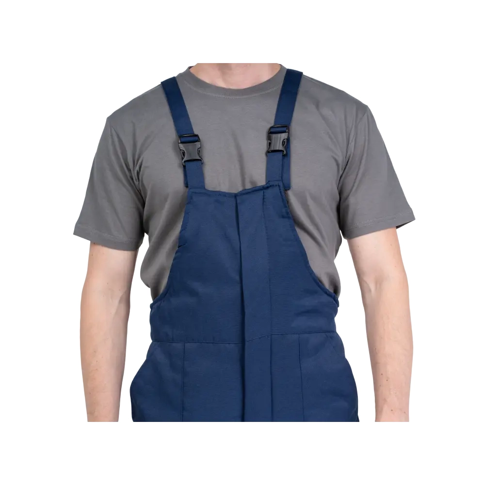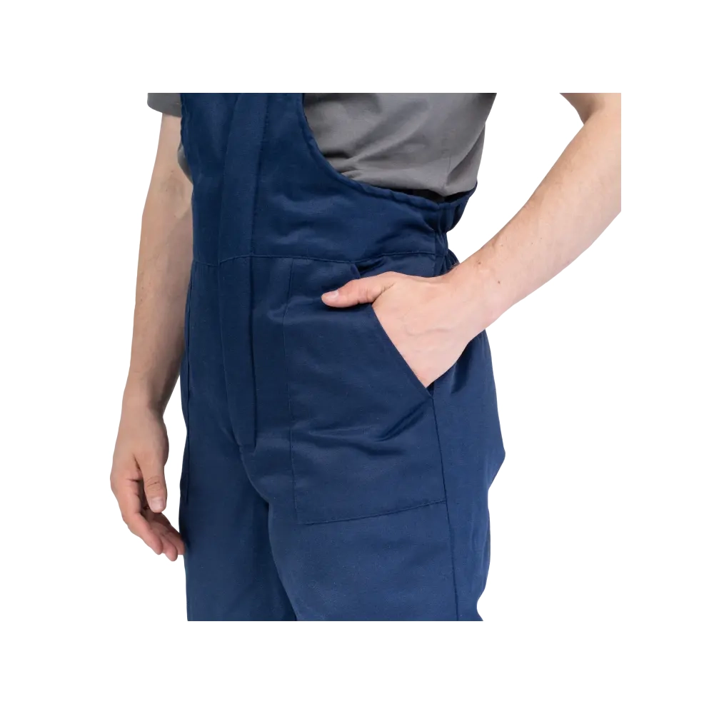 Полукомбинезон костюма тоже утеплен синтепоном, есть два