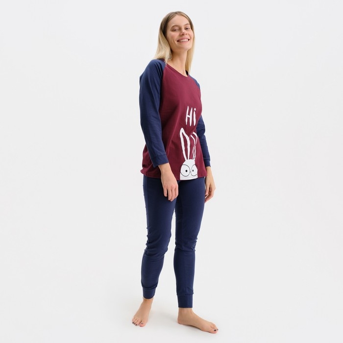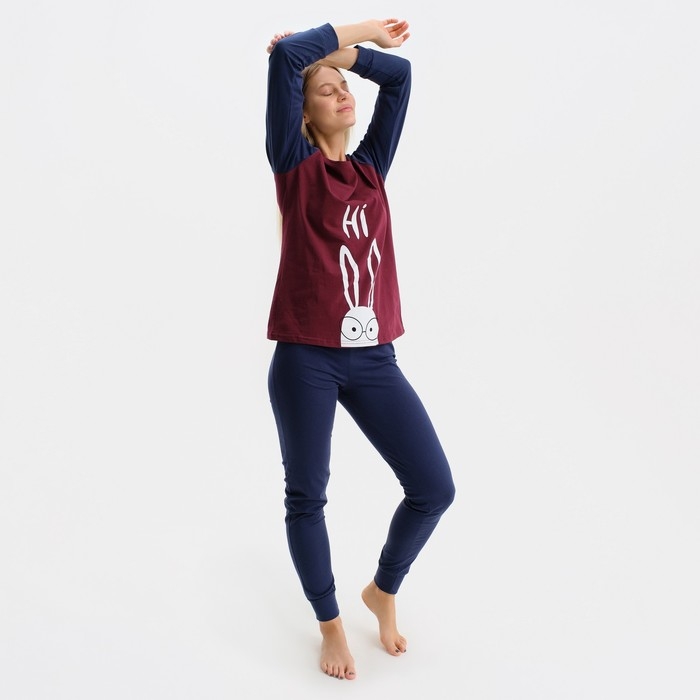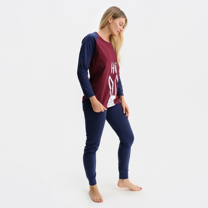 Костюм женский (брюки/джемпер), цвет индиго/бордо, размер 48