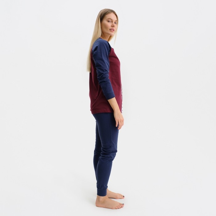 Костюм женский (брюки/джемпер), цвет индиго/бордо, размер 50