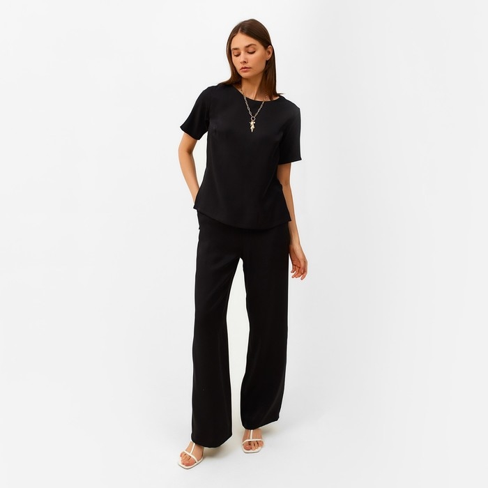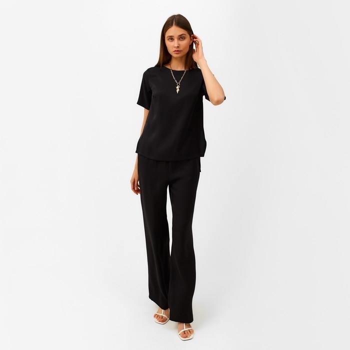 Костюм женский (футболка, брюки) MINAKU: Enjoy цвет чёрный, размер 46