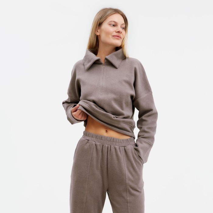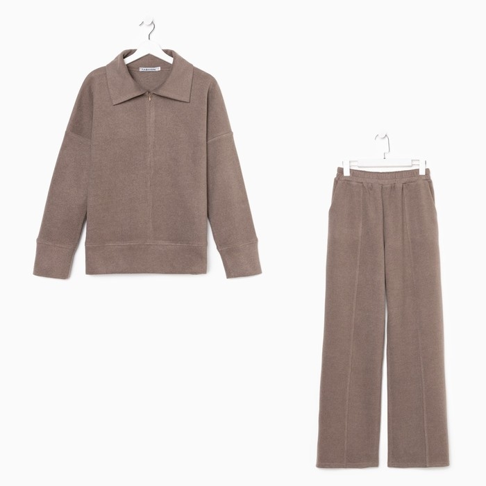 Костюм женский (свитер/брюки), цвет бежевый, размер 44