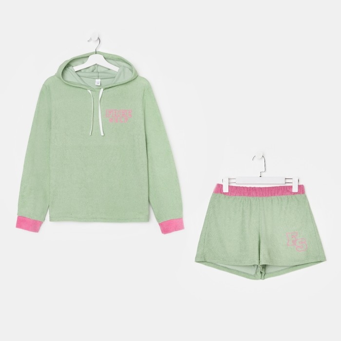 Костюм женский (толстовка и шорты), цвет мята, р-р 50