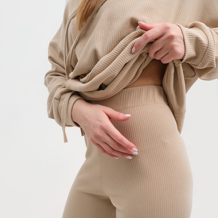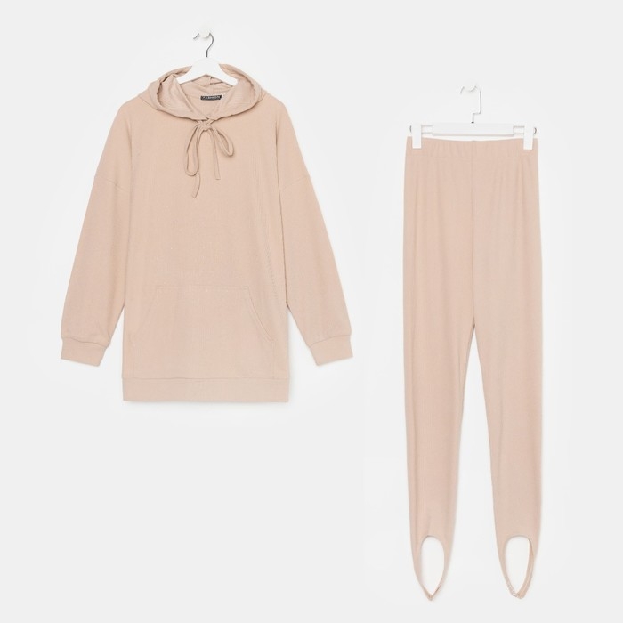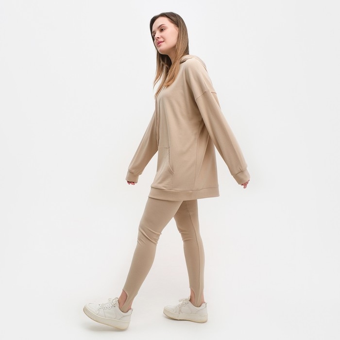 Костюм женский (толстовка/легинсы), цвет бежевый, размер 44