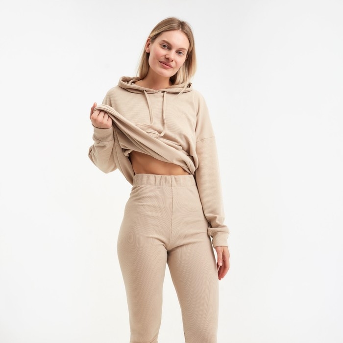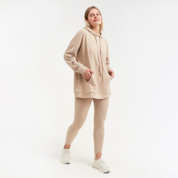 Костюм женский (толстовка/легинсы), цвет бежевый, размер 48