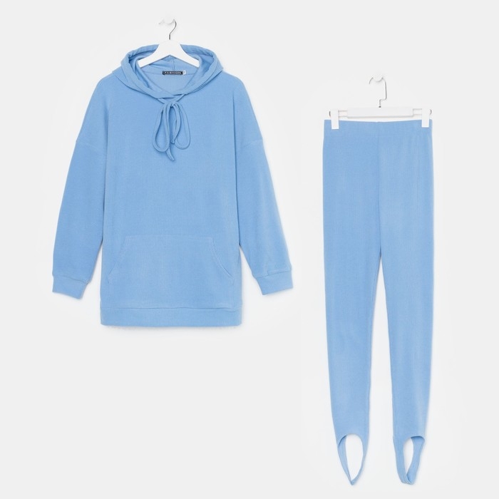 Костюм женский (толстовка/легинсы), цвет голубой, размер 44