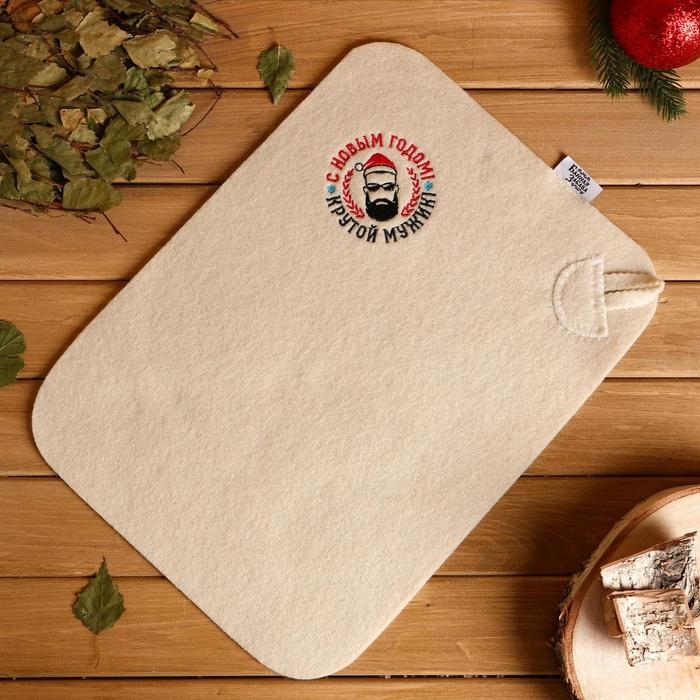 Коврик банный с вышивкой "С Новым Годом! Крутой мужик!"