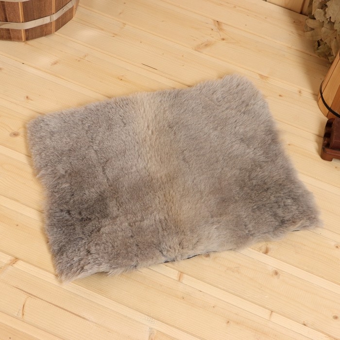 Коврик для бани с овчиной, черный 40х30 см