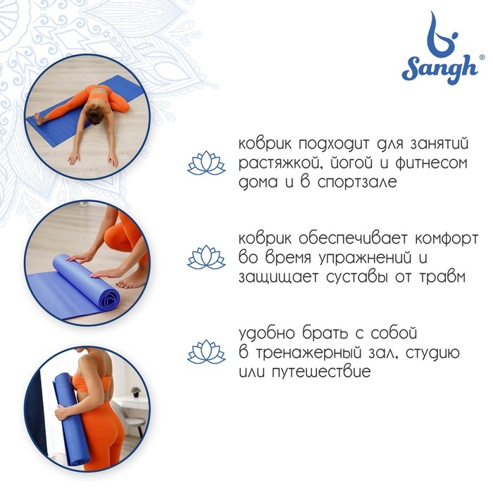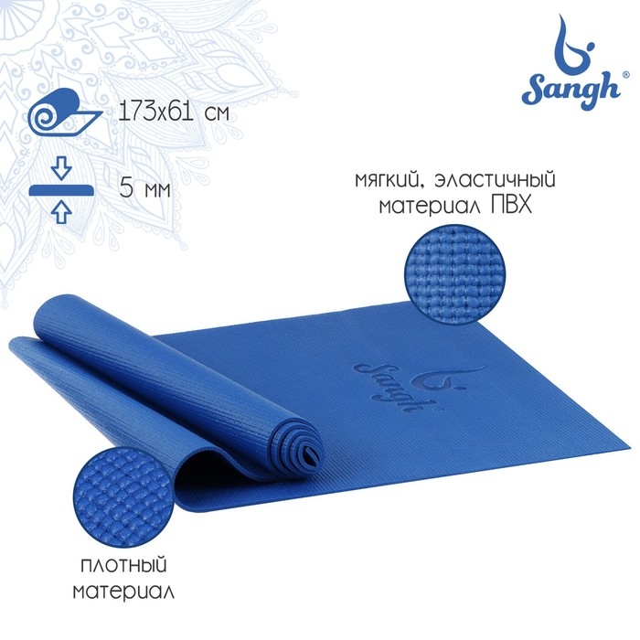 Коврик для йоги Sangh, 173×61×0,5 см, цвет тёмно-синий